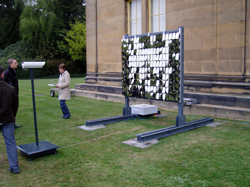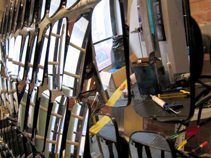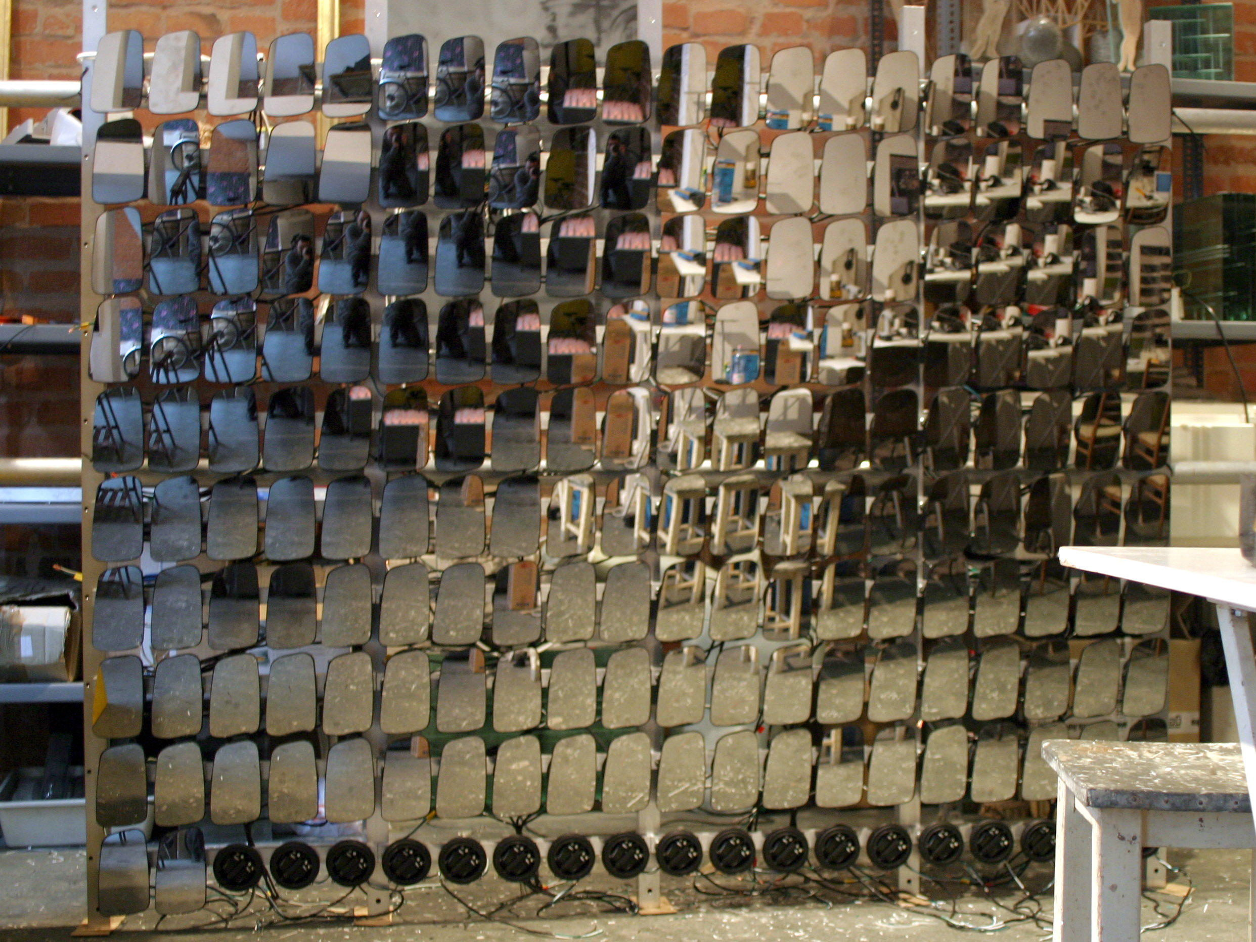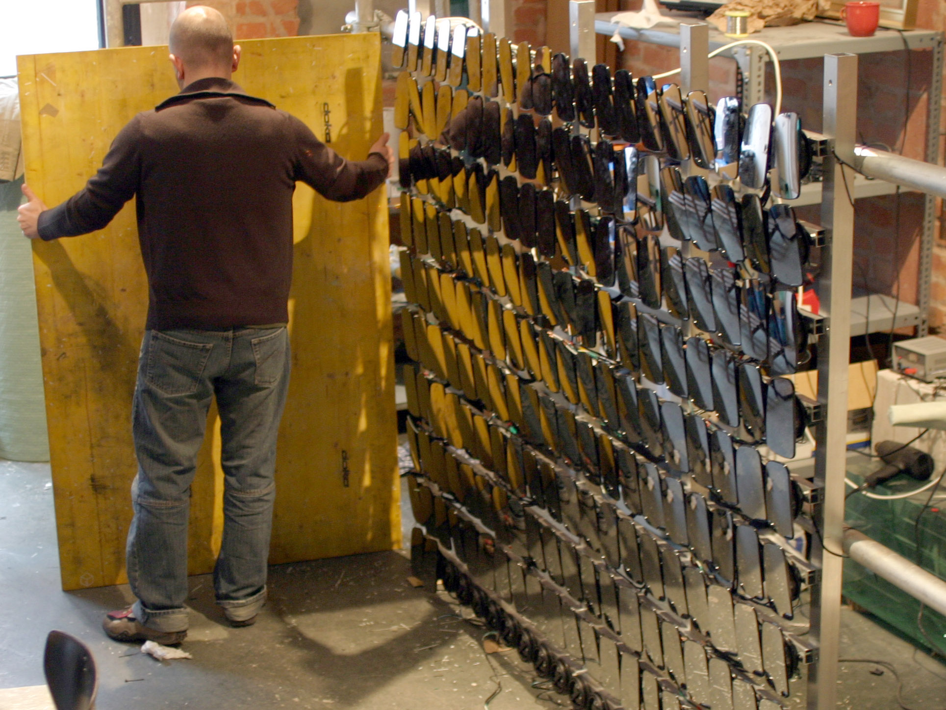 The mirrors, 'pixels' of the installation are made from power side
