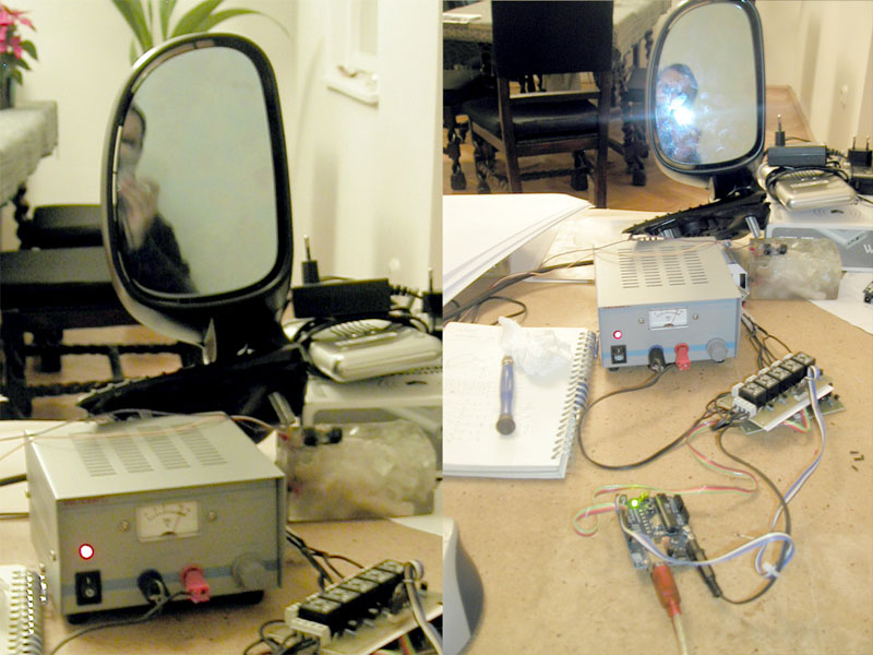 Each mirror is equipped with a small circuit board with a